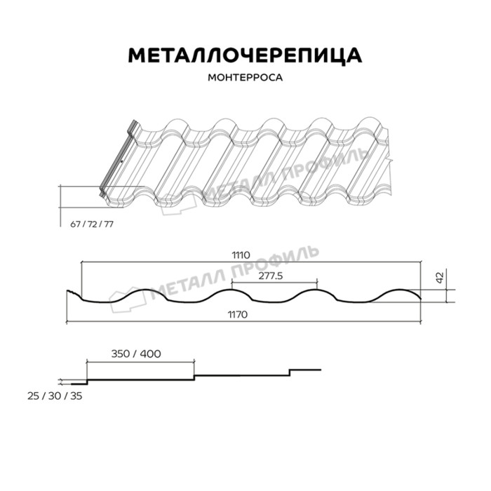 Металлочерепица Металл-Профиль Монтерроса-X 0,45 VikingMP® RAL 6007 Бутылочно-зеленый Показать информацию