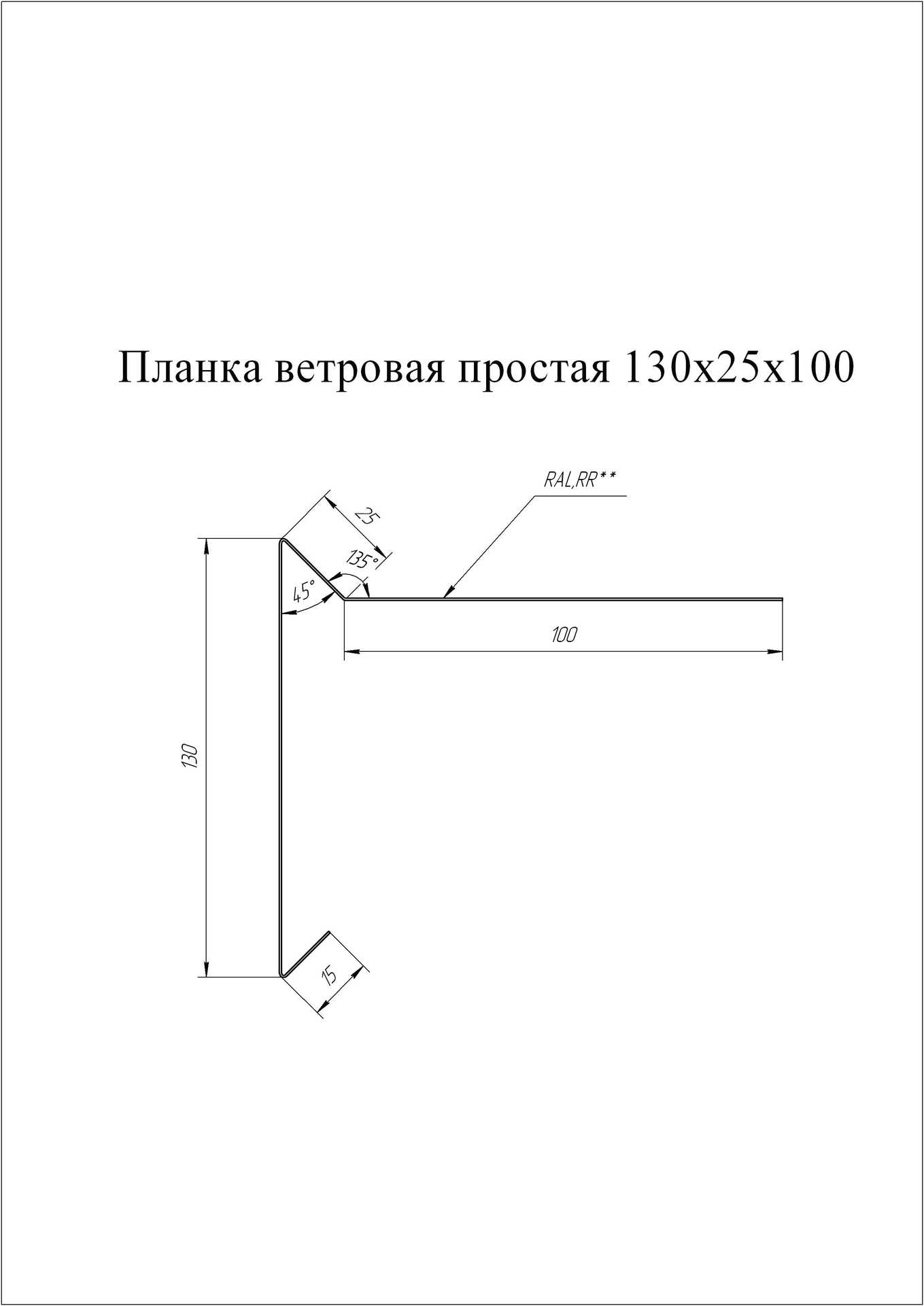 Планка ветровая для мягкой кровли 130х25х100 0,5 Quarzit lite с пленкой RAL 7024 мокрый асфальт
